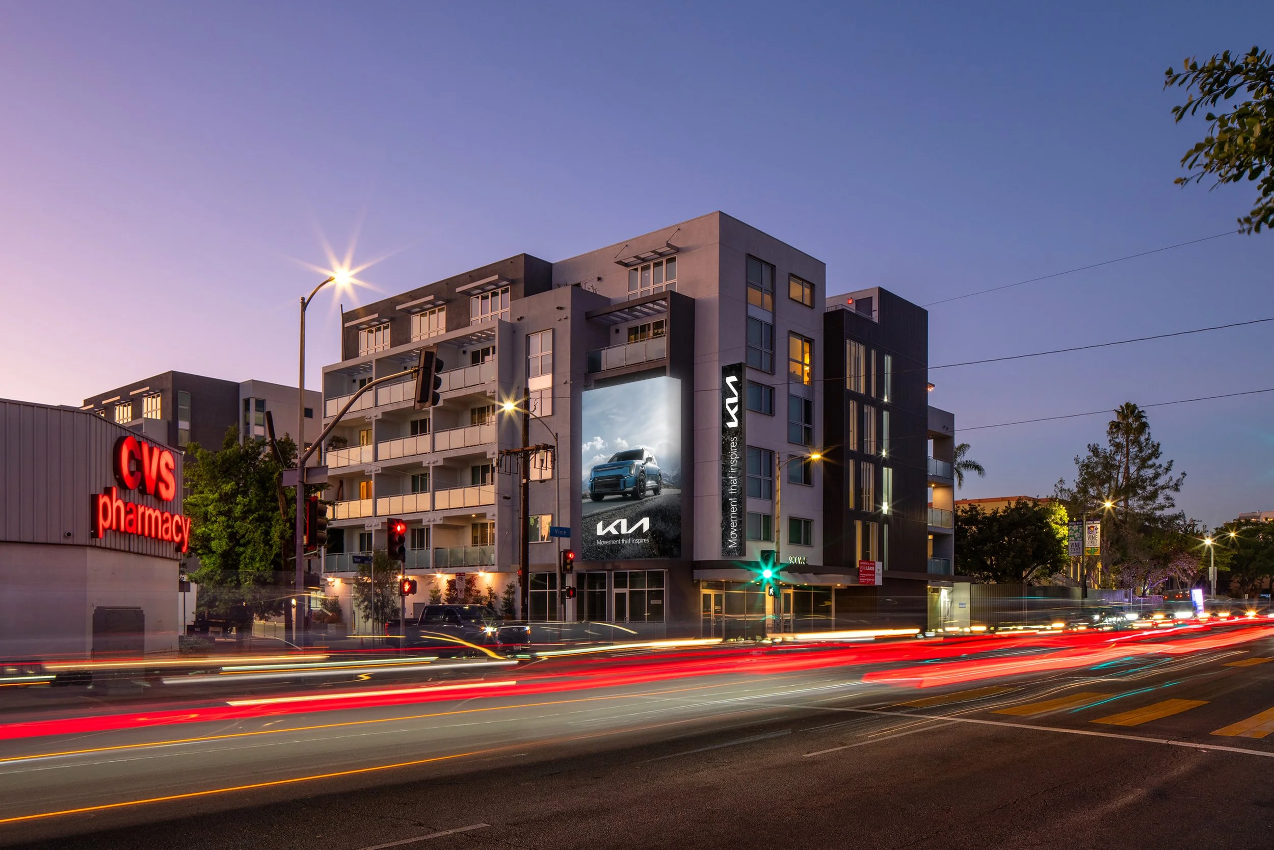Situated at the epicenter of Hollywood, Vine Spectacular commands attention along one of Los Angeles’ most iconic corridors. As drivers head north on Vine, the display rises against the unmistakable backdrop of the Hollywood Sign, an only-in-LA vantage point that fuses brand storytelling with cinematic legend. Moments away from Hollywood & Highland and the world-famous TCL Chinese Theatre, and just around the corner from major studio campuses like Netflix HQ, Vine Spectacular places brands directly within the daily rhythm of the entertainment capital of the world.